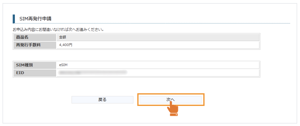 - 同日に複数回eSIM再発行申請をすることはできません。
